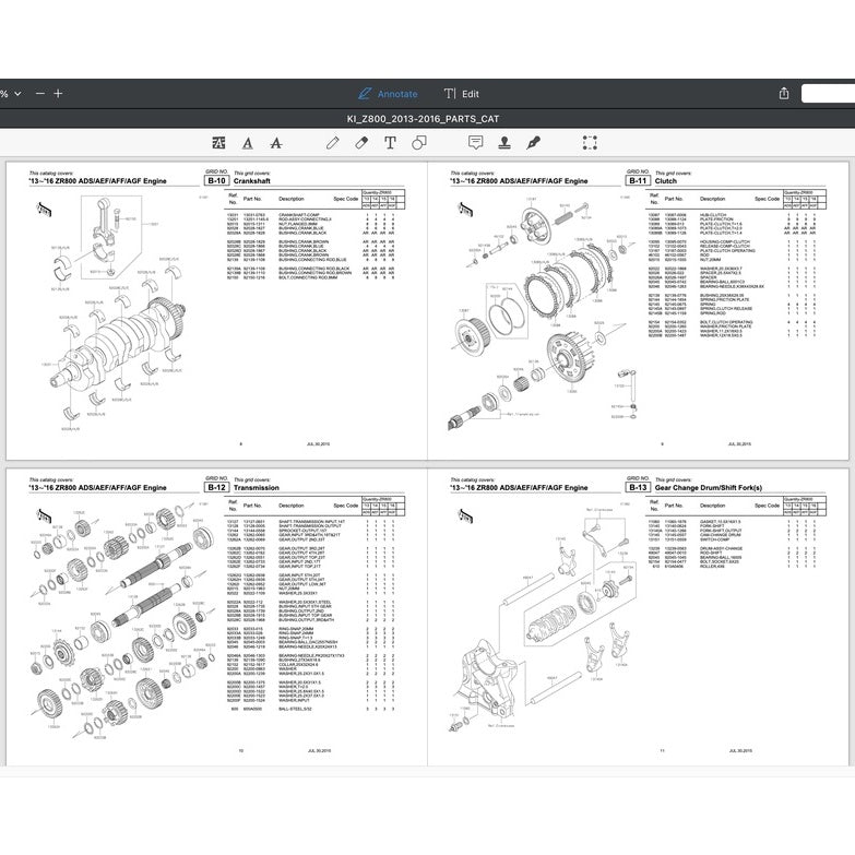 KAWASAKI Z800 (2012-2016) SERVICE WORKSHOP MANUAL + PARTS CATALOGUE + OWNER'S MANUAL